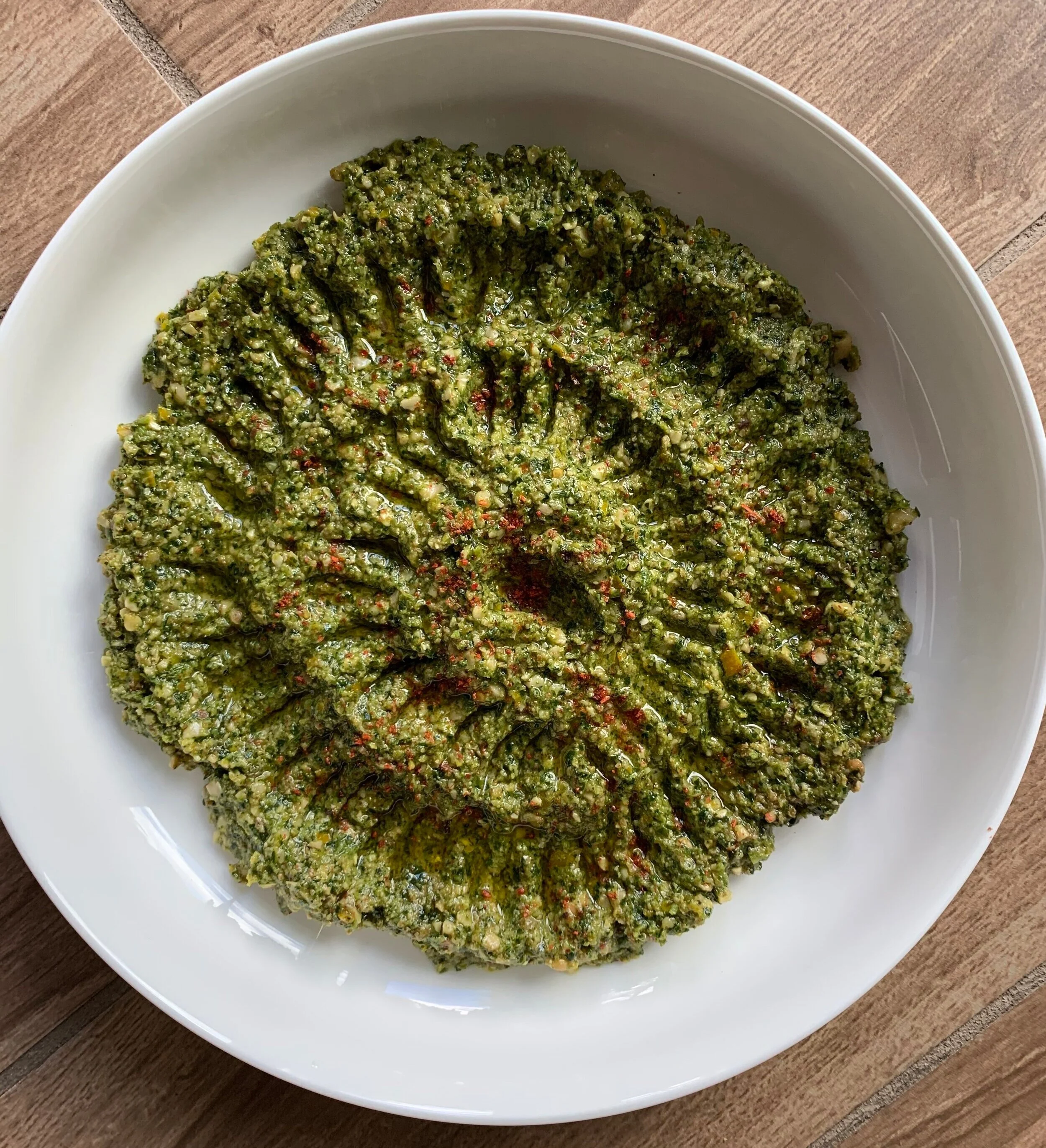 green muhummara: spicy + herby nut dip