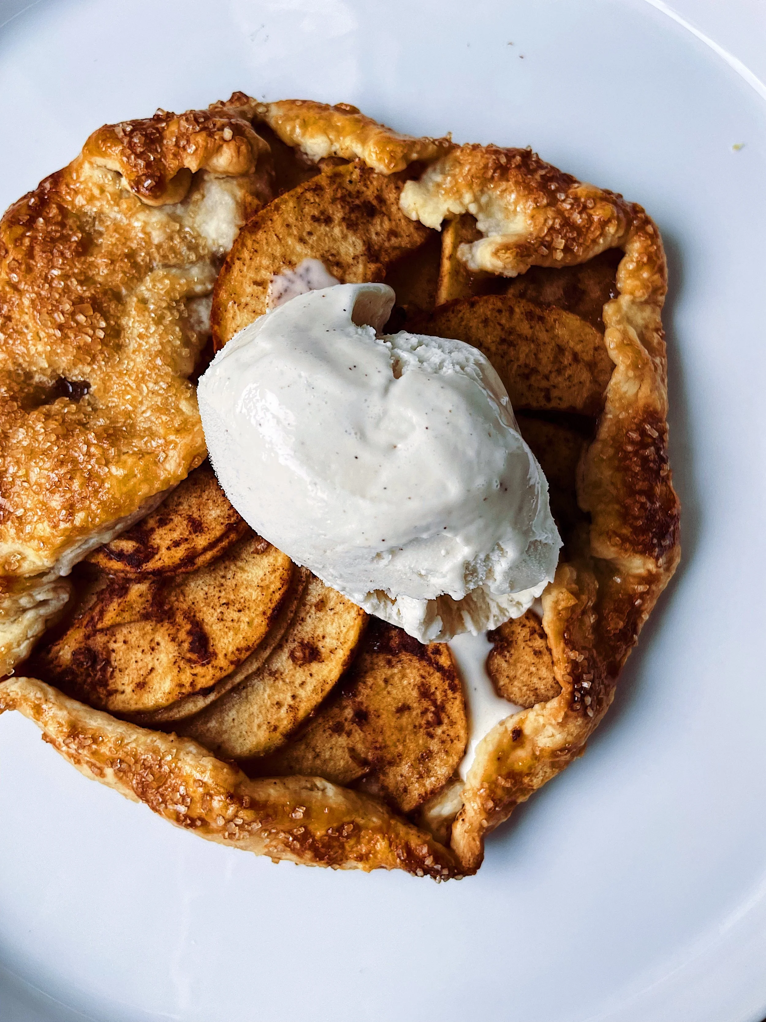 Apple pies are overrated, there I said it. It’s just too much apple filling for me, making me feel like I’m eating some apple sauce for infants. No thank you. Enter in the chat: this spiced apple galette, which has a thin layer of apples a top a flaky pie dough. Did I mention the spices include cardamom + ginger? Need I say more?